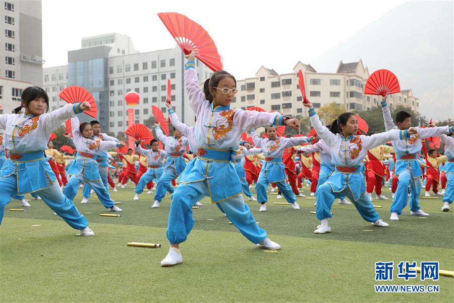 11月4日,蘭州市寧興小學(xué)學(xué)生在活動(dòng)現(xiàn)場(chǎng)表演武術(shù)操。新華社記者 張智敏 攝