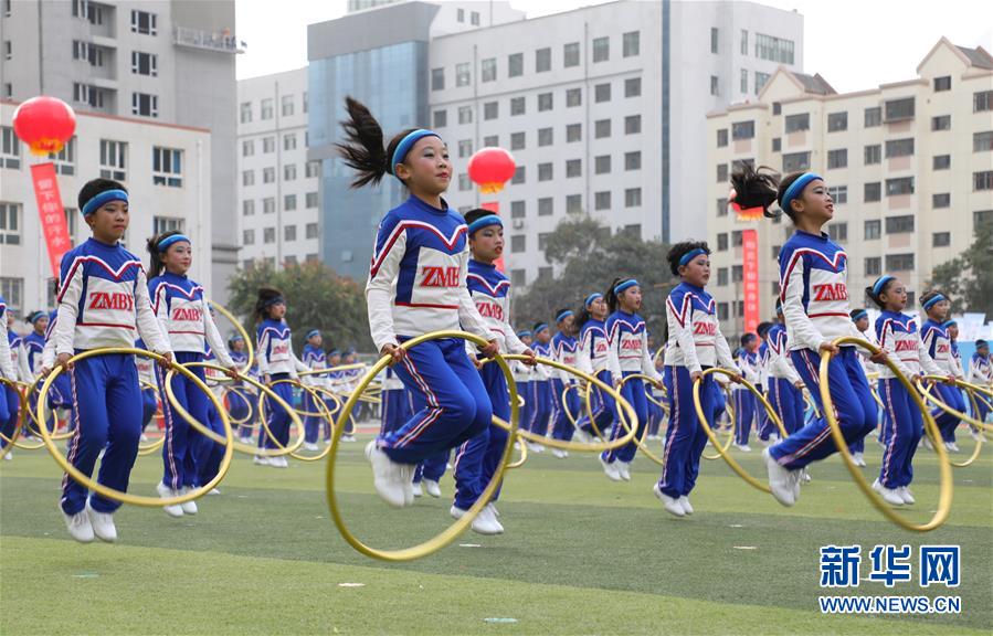 11月4日,蘭州市鹽場(chǎng)堡小學(xué)學(xué)生在活動(dòng)現(xiàn)場(chǎng)展示呼啦圈操。新華社記者 張智敏 攝