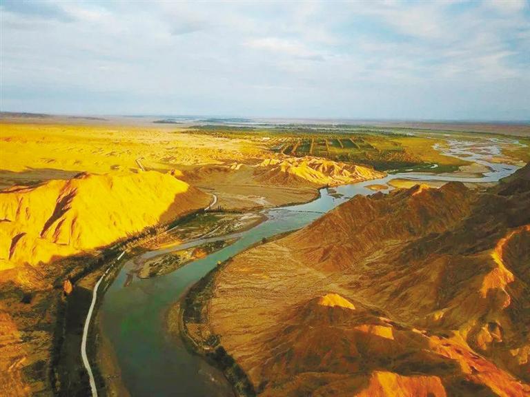 從2000年開(kāi)始,黑河流域?qū)嵤┙y(tǒng)一調(diào)水。從那時(shí)開(kāi)始,黑河水便年年成功調(diào)入內(nèi)蒙古西部大漠深處的東居延海,讓周邊額濟(jì)納旗的胡楊在大地之上鋪滿黃金,它們那樣美麗,實(shí)際上折射的卻是黑河流域人與自然和諧相處的關(guān)系。