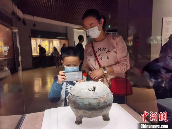 2月17日,甘肅省博物館迎來(lái)春節(jié)7天假期中的最后一波游客。圖為當(dāng)?shù)孛癖娫谡箯d參觀。 張婧 攝