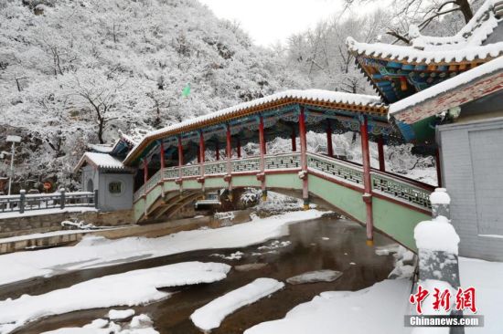 圖為上山的石階被雪覆蓋。張?zhí)鞂?攝
