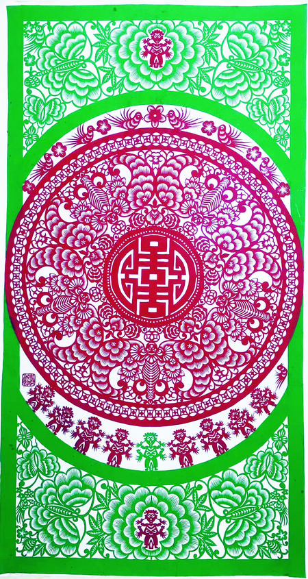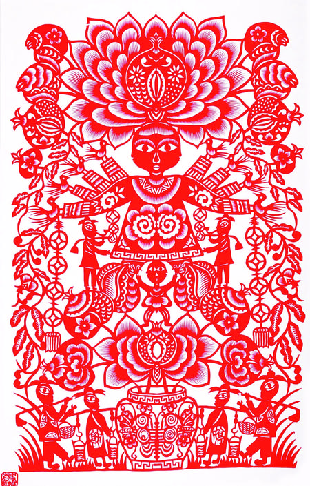 剪紙藝術題材多體現(xiàn)在祈福求安、避邪娛樂、孝道祭祀、喜事慶賀等等,例如五福娃娃、連年有余、大紅喜字、剪紙風格也多樣化、多元化,剪紙作品一般初期主要是以對稱圖案為主,中后期主要發(fā)展成人物頭像、大型復雜圖案畫及反映和宣傳時代氣息的、人們喜聞樂見的多元素圖案,也將古代藝術和現(xiàn)代特征結(jié)合起來給人渲染一種藝術美、社會美、時代美的視覺欣賞、其作品妙趣橫生,秀美遒勁,雄渾大氣,喜聞樂見,愛不釋手,廣泛流傳在城鄉(xiāng)之間。當下,剪紙藝術作為非物質(zhì)文化遺產(chǎn),深受社會各個階層的人士喜愛,把剪紙精神發(fā)揚光大。傳承非遺,是我們共同的使命。