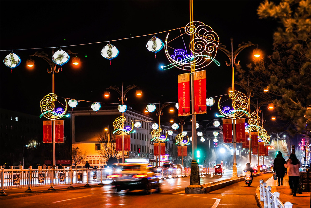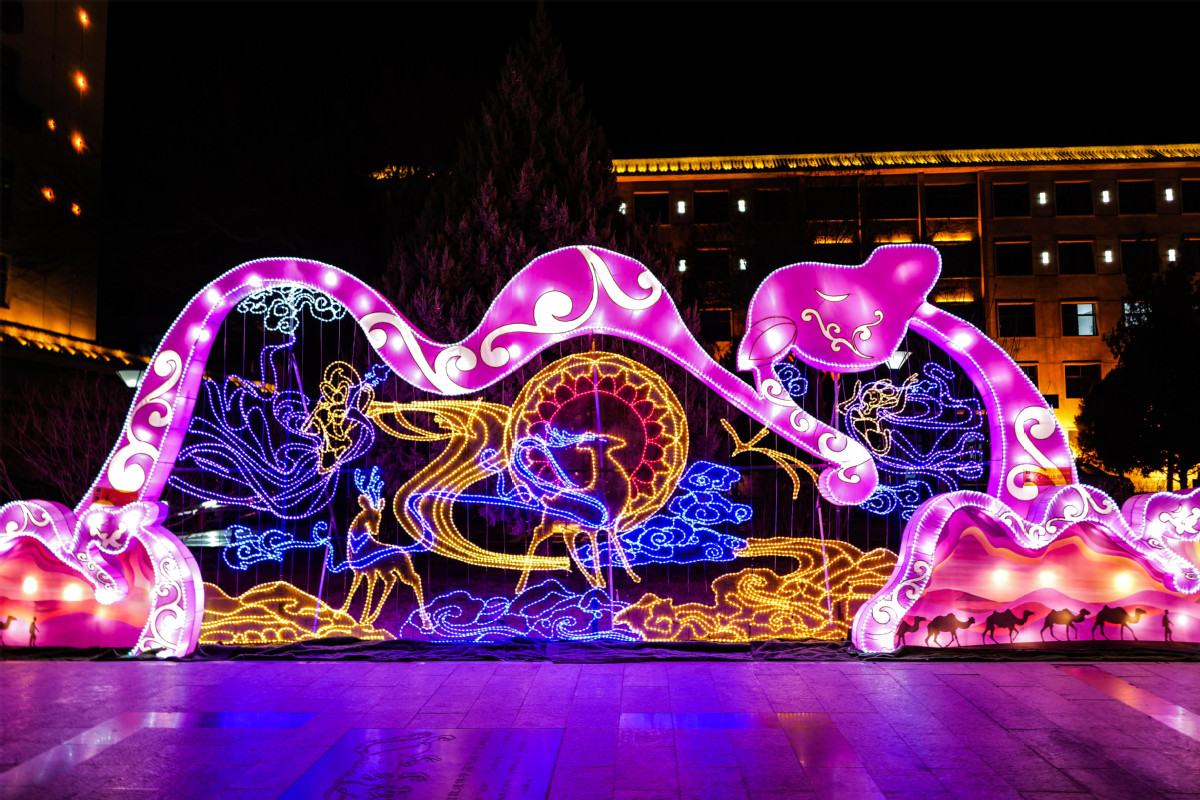 甘肅敦煌:文化彩燈點(diǎn)亮古郡夜空
