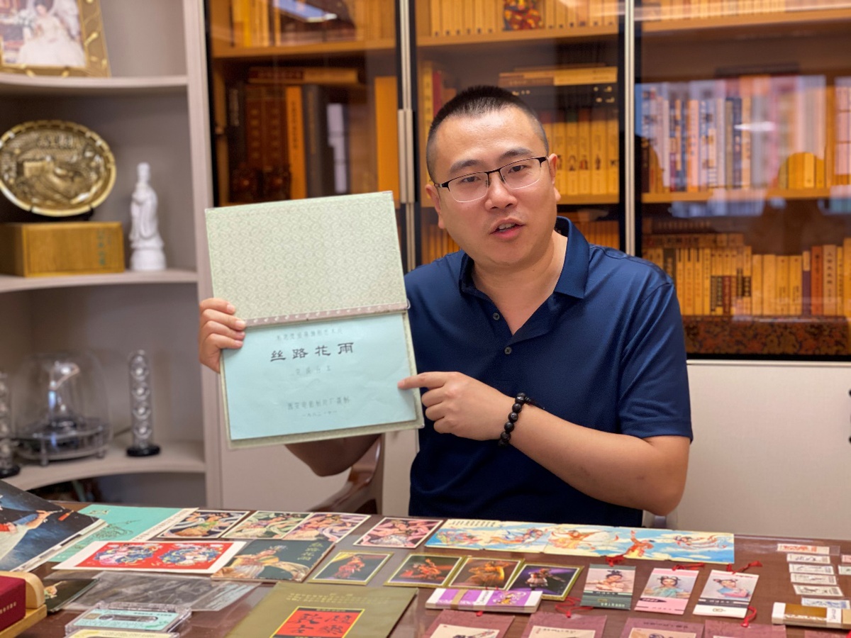 在陳曉斌的工作室,有舞劇初創(chuàng)劇本、編導(dǎo)手稿、舞美設(shè)計原稿和初始錄音,意大利演出宣傳冊、日本公演手冊、泰國演出節(jié)目單、西安電影制片廠電影臺本、年歷卡、年畫、小人書、明信片、火柴盒等藏品,這些都被他視若珍寶。