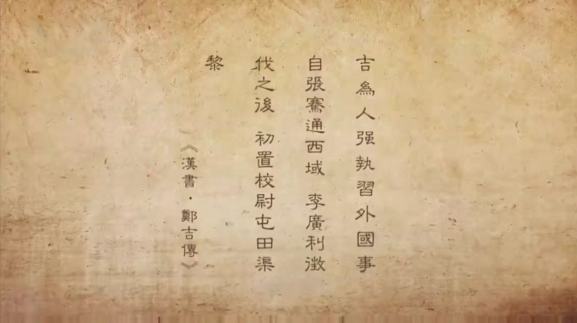 今天“甘肅簡(jiǎn)牘之西域往事”的主人公鄭吉,《漢書(shū)》有其傳。為其作傳的班固在文中對(duì)鄭吉的評(píng)語(yǔ)中,有一句為我們耳熟能詳?shù)脑挘?/p>