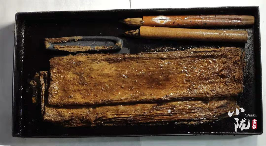 慕容智墓出土漆盒內(nèi)的筆墨紙