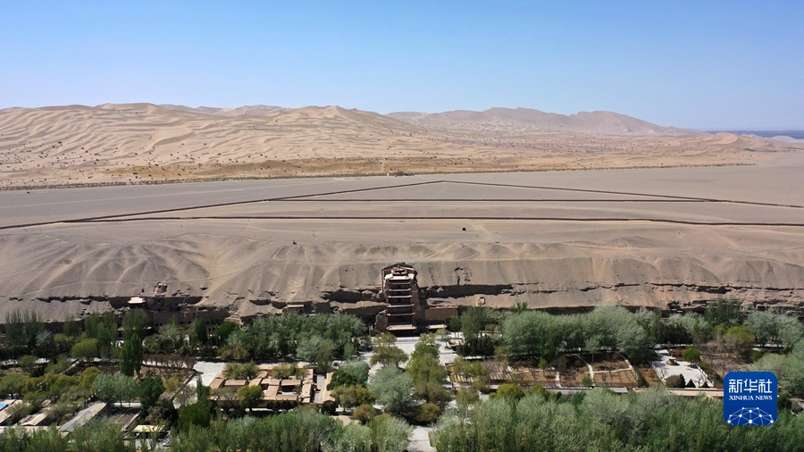 這是4月18日拍攝的莫高窟窟區(qū)(無人機照片)。新華社記者 陳斌 攝