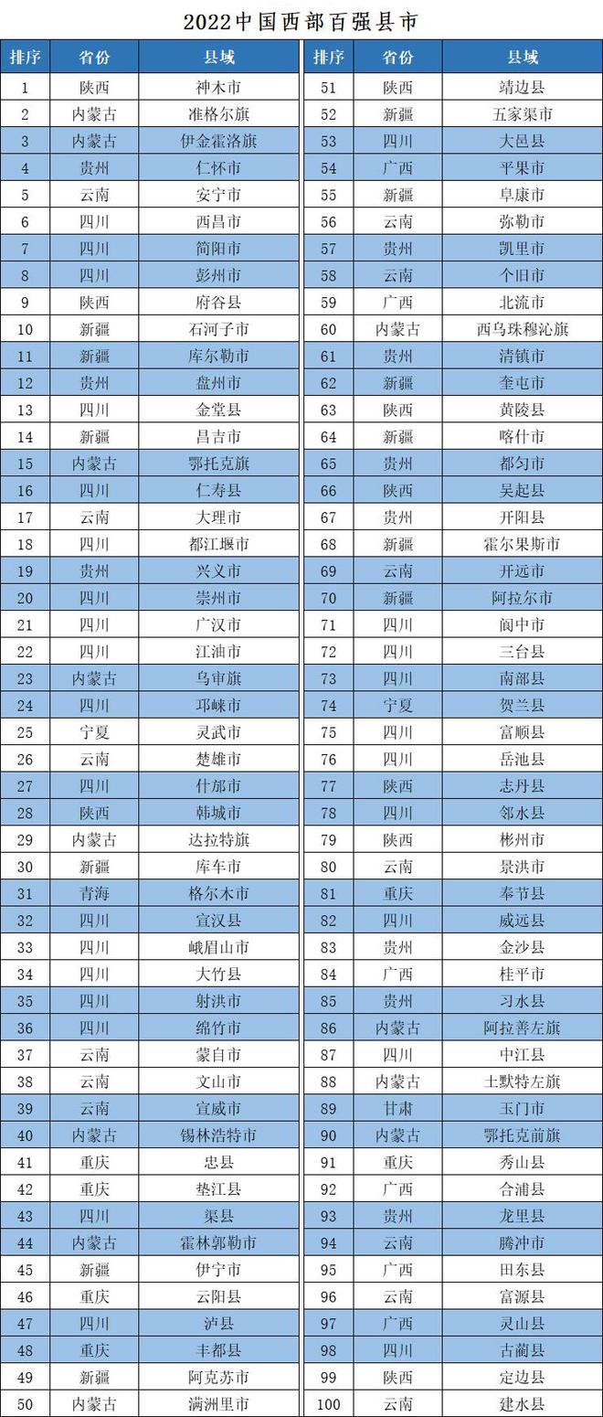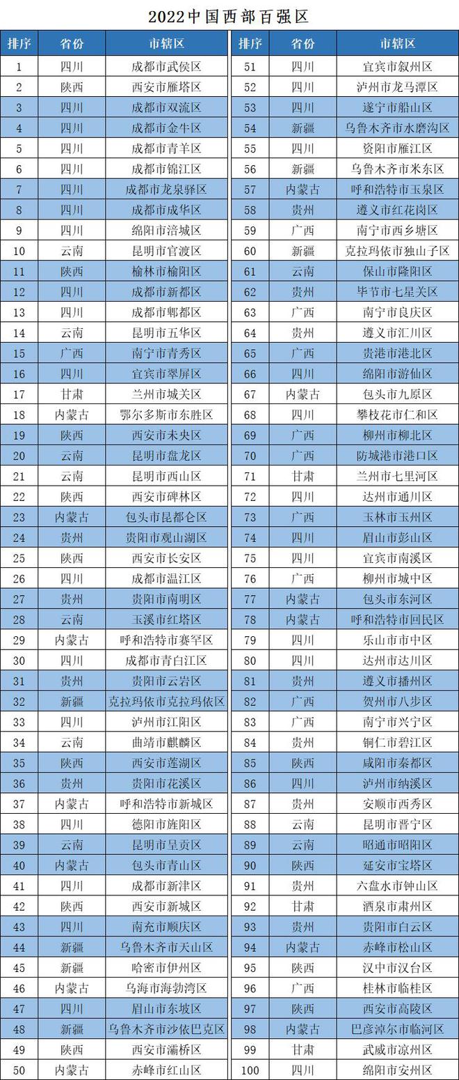 2022中國西部百強(qiáng)縣市區(qū)榜單發(fā)布 甘肅一市四區(qū)上榜