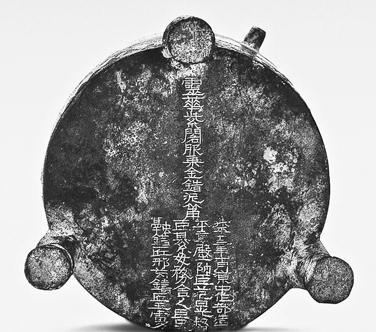 泥筩制作使用了金錯(cuò)工藝。金錯(cuò),即所謂的錯(cuò)金。這種工藝要經(jīng)過鑄造、鏨槽、鑲嵌、磨錯(cuò)等一系列程序,其工序繁復(fù),其中的鏨槽、鑲嵌需要極高的技藝。歷經(jīng)1600多年的歷史,這件泥筩上的金錯(cuò)紋飾依然熠熠生輝,反映了前涼時(shí)期錯(cuò)金工藝水平之高。并且在泥筩銘文中還記載有融錯(cuò)匠的名字,這在國內(nèi)青銅器銘文中極為少見,說明這種手工藝在當(dāng)時(shí)可能已經(jīng)是前涼官府手工業(yè)的一個(gè)生產(chǎn)部門。