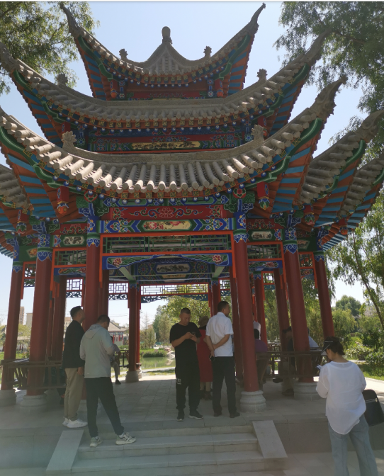 癸卯夏末,甘肅省、蘭州市著名詩人聯家一行10余人,應邀來到著名的史前遺址——齊家文化發(fā)現和命名地——廣河縣,考察該縣城新建成的公園,為其命名,并撰寫楹聯、匾額,為橋、亭、榭、湖、軒等景點命名。