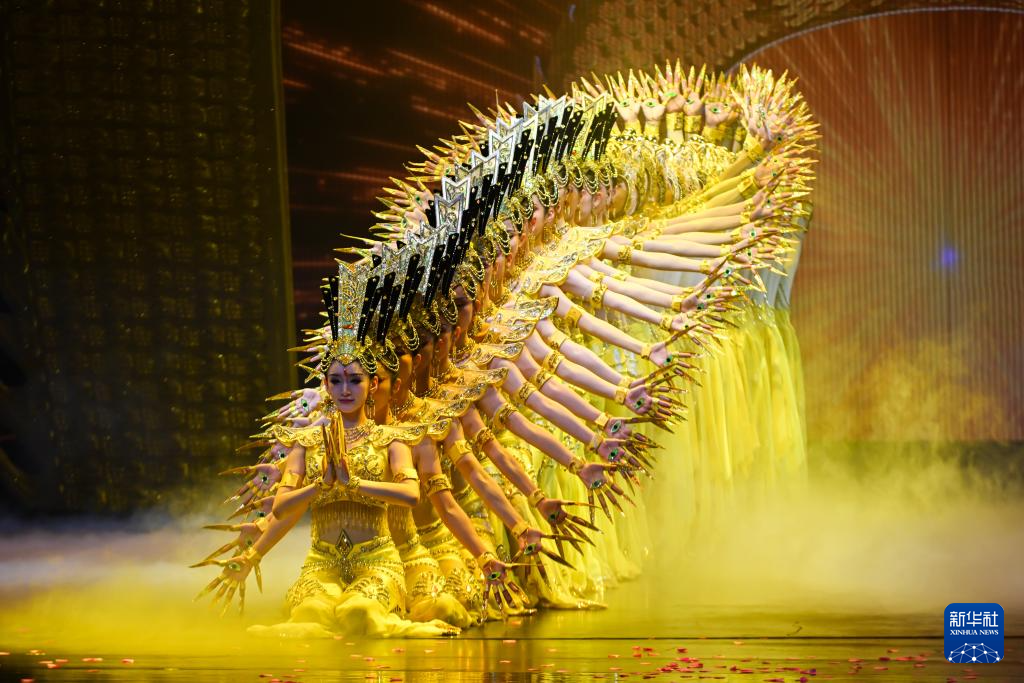 今年以來,脫胎于敦煌文化的洞窟沉浸式體驗劇《樂動敦煌》、室內(nèi)情景體驗劇《又見敦煌》、沙漠實景演出《敦煌盛典》和中國殘疾人藝術(shù)團(tuán)情景音畫劇《千手千眼》四場劇目在絲路名城甘肅敦煌同步上演,劇目將敦煌歷史底蘊(yùn)、服飾文化、樂舞文化等生動融合,為游客呈現(xiàn)出精彩絕倫的敦煌文化視覺盛宴,深受中外游客喜愛。截至8月10日,四大劇目今年已累計演出1175場次,觀看游客突破66萬人次。其中,《千手千眼》以中國殘疾人藝術(shù)團(tuán)音樂舞蹈詩《我的夢》為藍(lán)本,融合莫高窟第3窟等敦煌壁畫元素創(chuàng)編而成,50名聽障或視障演員通過音樂、舞蹈和多媒體等形式創(chuàng)新講述了“妙善救父”的民間故事,是特殊藝術(shù)與敦煌文化的融合。