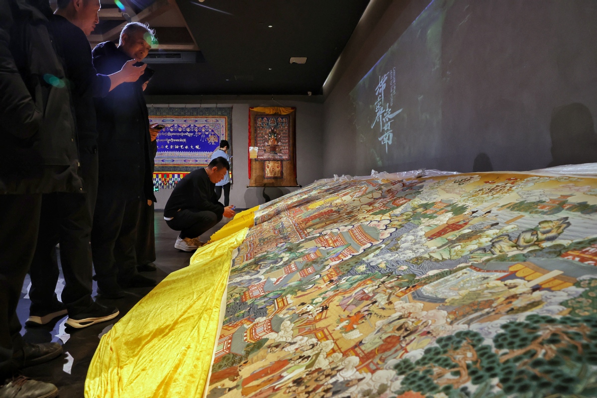 (記者 姜東)2023年12月26日,北京,觀眾在皇城藝術(shù)館參觀《甘肅甘南非遺文化藝術(shù)展》。近日,《甘肅甘南非遺文化藝術(shù)展》在北京皇城藝術(shù)館開展。此次展覽主要展示了甘南藏族自治州非物質(zhì)文化遺產(chǎn)藝術(shù)作品《拉卜楞文化歷史彩繪藝術(shù)大觀》《藏族書法瑰寶》及甘南拉卜楞文創(chuàng)產(chǎn)品。