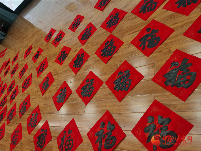 紅福滿地、墨香四溢,群眾們圍攏在書案前,挑選自己喜愛的聯(lián)句請書法家書寫。書法志愿者們激情洋溢、揮毫潑墨,將濃濃的新春祝福凝聚在筆端,一行行俊秀蒼勁的書法,一副副對聯(lián),飽含幸福吉祥,寄托美好希望,現(xiàn)場洋溢著濃濃的節(jié)日味道。