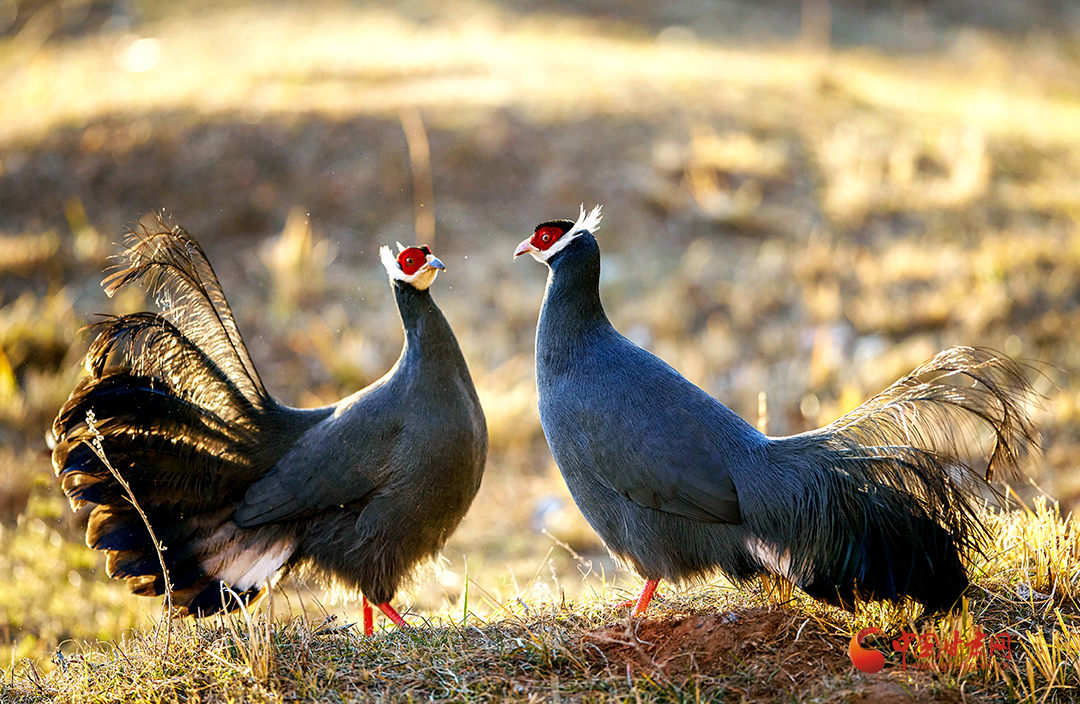 近日,祁連山國(guó)家公園甘肅省管理局張掖分局工作人員拍攝到國(guó)家二級(jí)保護(hù)野生動(dòng)物藍(lán)馬雞覓食嬉戲場(chǎng)景。