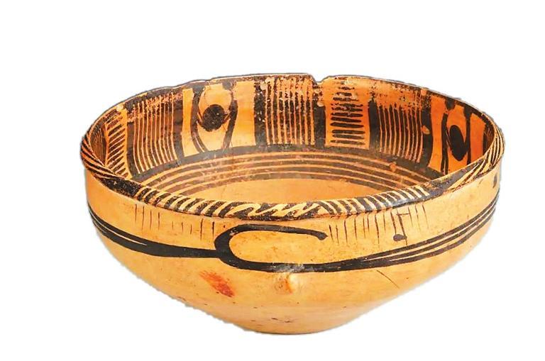 【雙人抬物紋彩陶盆】