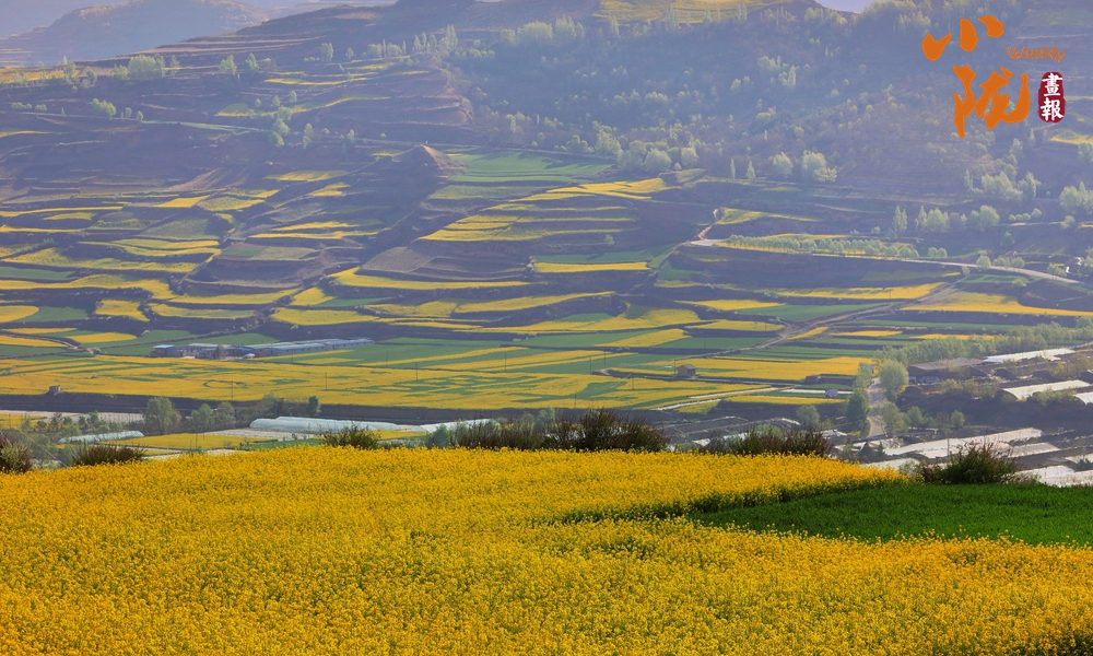 在武山縣龍臺鎮(zhèn)、灘歌鎮(zhèn)、楊河鎮(zhèn)等高山地區(qū),萬畝優(yōu)質(zhì)高山油菜已花開成海,梯田式的油菜花與遠(yuǎn)山近水、村落農(nóng)家交相輝映,與綠油油的麥田相映成趣,形成了獨(dú)具風(fēng)格的山水田園風(fēng)光,為大地呈現(xiàn)出最美的春色。