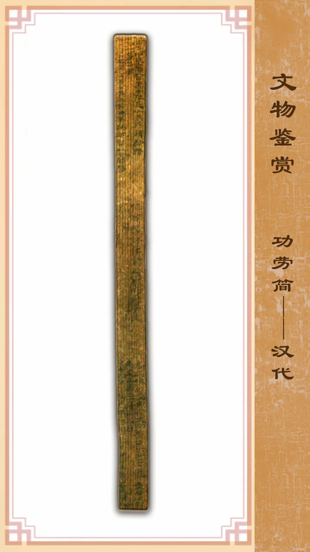 此簡(jiǎn)1972年出土于破城子甲渠候官遺址,分三段書寫。內(nèi)容為居延甲渠候官第十燧長(zhǎng)徐譚的功將文書。“功將”即“功勞墨將”,功勞墨將文書指官吏個(gè)人才能與勞績(jī)的登記名單,是官方對(duì)官吏功勞下發(fā)的認(rèn)定通知。