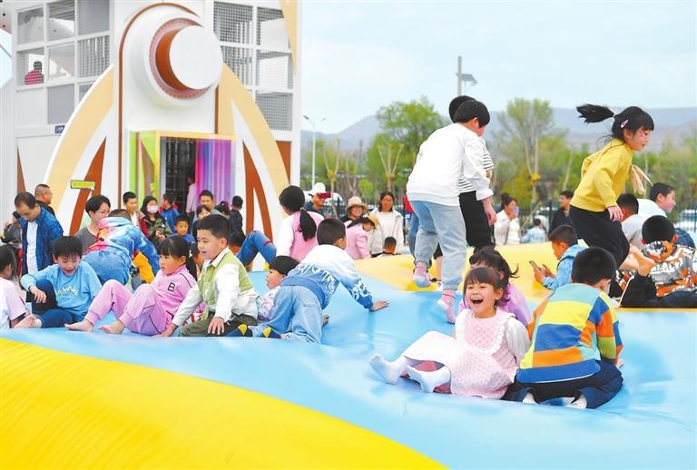 孩子們?cè)阡尤缫鉃秤H子樂(lè)園功能區(qū)快樂(lè)玩耍。新甘肅·甘肅日?qǐng)?bào)記者 馬伊星