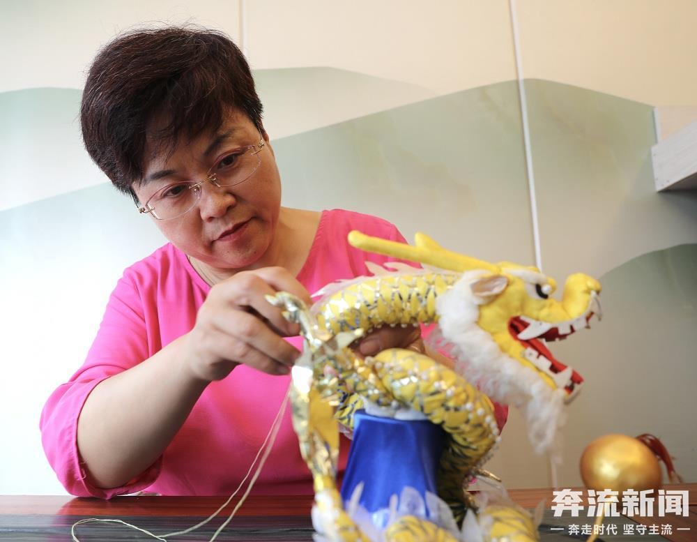 尹麗珺還是當?shù)睾砂沁z傳承人。在傳統(tǒng)荷包的傳承上她也加入了自己的創(chuàng)作,如布料、線色以及造型和圖案搭配上都將美好的寓意和傳統(tǒng)文化融入其中,她制作的荷包作品“童趣”“舞獅”“龍騰盛世”等作品在全國工藝品、中國手工藝術(shù)博覽會上多次獲獎。