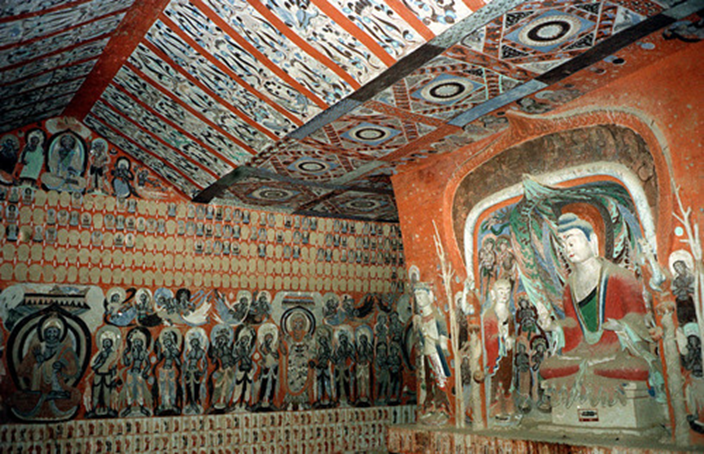 舉世聞名的中國甘肅敦煌莫高窟藏經(jīng)洞被發(fā)現(xiàn)