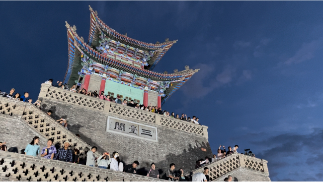 夕陽西下,夜色漸濃,三臺閣上游人如織,山下的萬家燈火隨著夕陽余暉的隱退漸漸蘇醒,一盞盞燈光次第亮起,璀璨如星海。人們紛紛舉起手機和相機,記錄下這一刻的美好。“真不愧是金城蘭州,站在這里俯瞰蘭州是什么神仙視角!”“終于知道夜晚的蘭州為啥被稱作‘蘭哈頓’了,回去好好跟朋友炫炫……”來自陜西的大學(xué)生小劉和他的小伙伴們一邊尋找拍照最佳角度,忍不住發(fā)出贊嘆。在這一刻,古老的閣樓與游客一起沉醉在蘭山的夏夜晚風(fēng)中?!?/p>