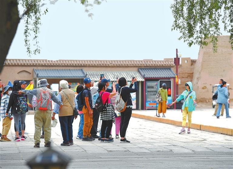 游客在嘉峪關(guān)關(guān)城拍照留念。新甘肅·甘肅日報(bào)記者 馬伊星