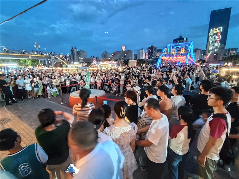 夜游黃河項(xiàng)目則圍繞黃金水道,結(jié)合蘭州南北狹長(zhǎng)、“橋梁之都”的特點(diǎn),串聯(lián)黃河母親、中山橋、白塔山,形成“夜游黃河”3條精品航線,開(kāi)通水上巴士環(huán)線,并依托碼頭創(chuàng)新開(kāi)展露營(yíng)、草地婚禮等活動(dòng),全方位展示了黃河蘭州段魅力。同時(shí),黃河之濱音樂(lè)展演、黃河市集等豐富精彩的活動(dòng)也已經(jīng)成為“夜游黃河”的常態(tài)化演出和節(jié)目。
