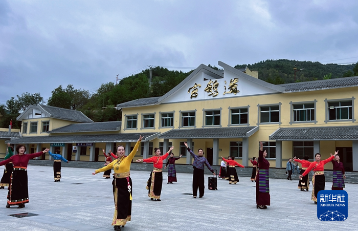 在官鵝溝大景區(qū),伴隨著當(dāng)?shù)卦瓌?chuàng)旅游歌曲《娥嫚》的旋律,游客們和身著民族服飾的表演者在山水之間載歌載舞,現(xiàn)場不時響起陣陣掌聲和歡呼聲。“如詩如畫的美景,獨(dú)具魅力的民族文化,歌舞聲把節(jié)日氣氛拉滿。”周敏說。