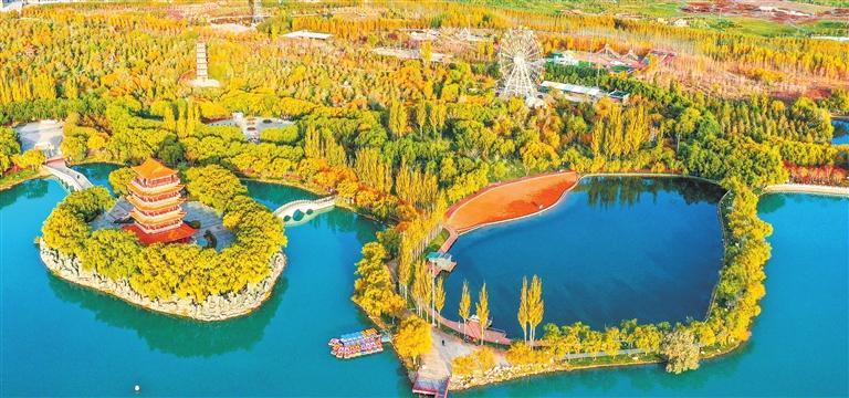玉門市玉澤湖公園湖水澄澈,絢麗多彩。新甘肅·甘肅日報記者 馮樂凱