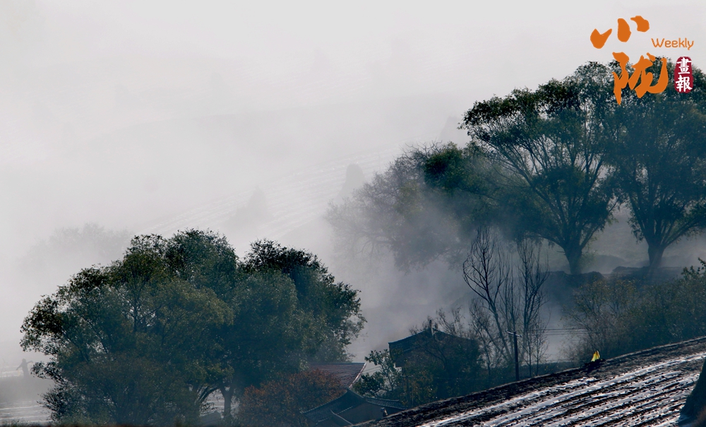 霧氣彌漫,大樹如墨,好一幅中國(guó)山水意境圖。