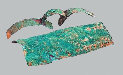 冶金業(yè):辛店文化遺址發(fā)現(xiàn)了一定數(shù)量的早期青銅制品。其中在蓮花臺(tái)遺址瓦渣咀發(fā)現(xiàn)青銅刀2件、錐2件、扣3件。其中一件青銅刀刀身扁薄,凹背弧刃,長殘4.5厘米、寬1.5厘米;青銅錐錐身挺直,橫剖面呈方形,其中一件殘長5.2厘米;青銅扣球面或凸面,扣內(nèi)有脊,脊的橫剖面作圓形或方形,直徑一般在1.4厘米—1.6厘米之間。在黑頭咀發(fā)現(xiàn)1件銅刀和1件銅匕,其中銅刀保存完整,刀身向刃部彎曲,刀尖往上翹,柄部有一凸棱,長15厘米、寬2.7厘米。張家咀遺址發(fā)現(xiàn)1件青銅器殘片,系為銅容器口腹部殘片,侈口,弧壁,口沿厚0.4厘米。青銅矛一件,矛身略呈三角形,前鋒已殘,銎作長方形,殘長3厘米、銎長1.8厘米、寬0.7厘米。發(fā)現(xiàn)銅渣2塊,經(jīng)鑒定確認(rèn)銅渣為冶煉青銅爐內(nèi)壁殘塊,附在冶煉爐內(nèi)的銅渣長6.5厘米、寬3.5厘米、厚1.1厘米。經(jīng)過巖相、光譜分析,銅渣是含有銅、錫、鉛的青銅金屬合金,反映出辛店文化不僅存在青銅器,并且已經(jīng)掌握了冶金技術(shù)。