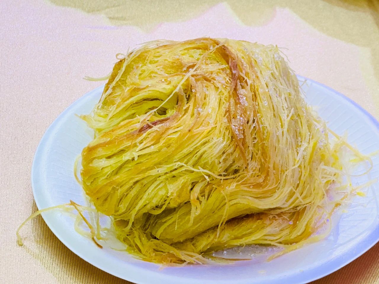 一窩絲的制作是一門精細(xì)的藝術(shù)。面粉、水、鹽和油巧妙混合,揉成光滑面團后,反復(fù)地拉伸、對折,直至那面團細(xì)如發(fā)絲,再盤成一團放入烤箱中,逐漸變得金黃酥脆。吃起來,那口感是層層疊疊的酥,帶著淡淡的油香,每一根絲在齒間斷裂,釋放出獨特的風(fēng)味。