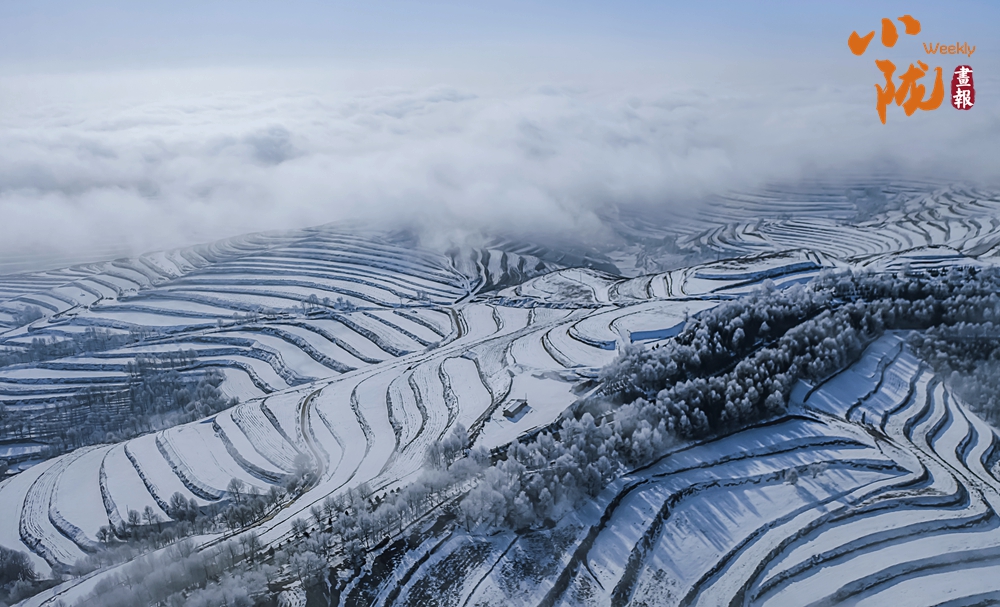 蒼茫積雪覆蓋下的梯田,仿佛蓋上了厚厚的棉被,等待來年五谷豐收。