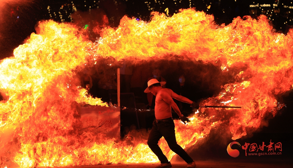 春節(jié)期間,在臨夏永靖劉家峽太極廣場(chǎng)上進(jìn)行的打鐵花和火壺表演吸引了不少觀眾,營(yíng)造了濃濃的節(jié)日氛圍。