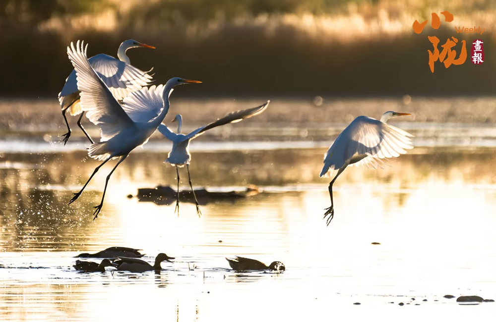 湖中的白鷺翩翩起舞,嬉鬧翻飛,歡快鳴叫,有的停落湖岸,有的游向湖心,有的翻飛空中,為游客帶來無盡的歡樂。看鳥兒們嬉鬧,仿佛回到童年時(shí)代。自由、自在、生機(jī)無限,讓每個(gè)人感受到無窮的生命力量。