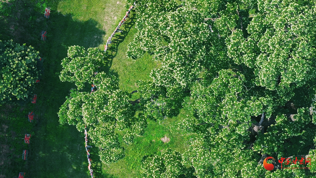 盛夏時(shí)節(jié),崇信縣錦屏鎮(zhèn)關(guān)河村的“華夏古槐王”迎來(lái)盛花期。3200歲的“活文物”枝頭繁花似雪,與隴東南的青山黛色相映成趣。