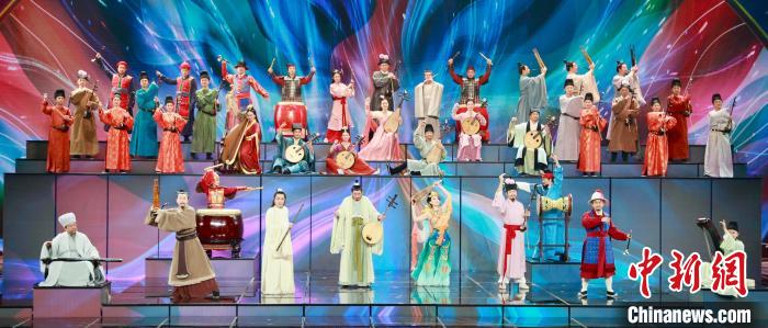 開場節(jié)目《齊天樂》中,以神舟十三號航天員王亞平在空間站奏響經(jīng)典旋律《茉莉花》為序曲,將中國空間站傳來的太空音樂祝福和晚會(huì)現(xiàn)場激昂的民樂演奏巧妙融合。中華文化史上與民樂相伴的十組傳奇人物齊聚一堂,從斗琴到合鳴,演繹了一曲融合琴、簫、笙、阮、鼓、琵琶、箜篌、二胡、嗩吶、羯鼓等十種代表性民族樂器的創(chuàng)意交響。