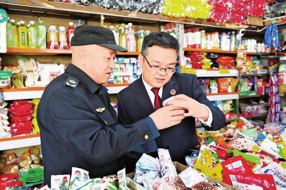 民勤縣檢察院聯(lián)合縣市場監(jiān)管局對校園周邊小賣部、超市等重點(diǎn)場所開展食品安全專項檢查,護(hù)航未成年人健康成長(2024年3月25日拍攝)。