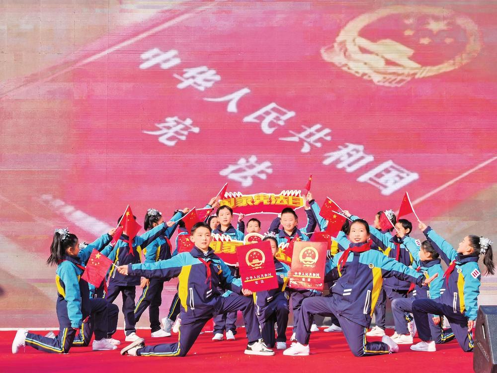 張掖路小學(xué)學(xué)生演出情景歌舞《憲法伴我們成長》。12月4日,蘭州市在市民廣場舉行2024年“12·4”國家憲法日暨憲法宣傳周活動。 新甘肅·甘肅法治報記者楊丹攝