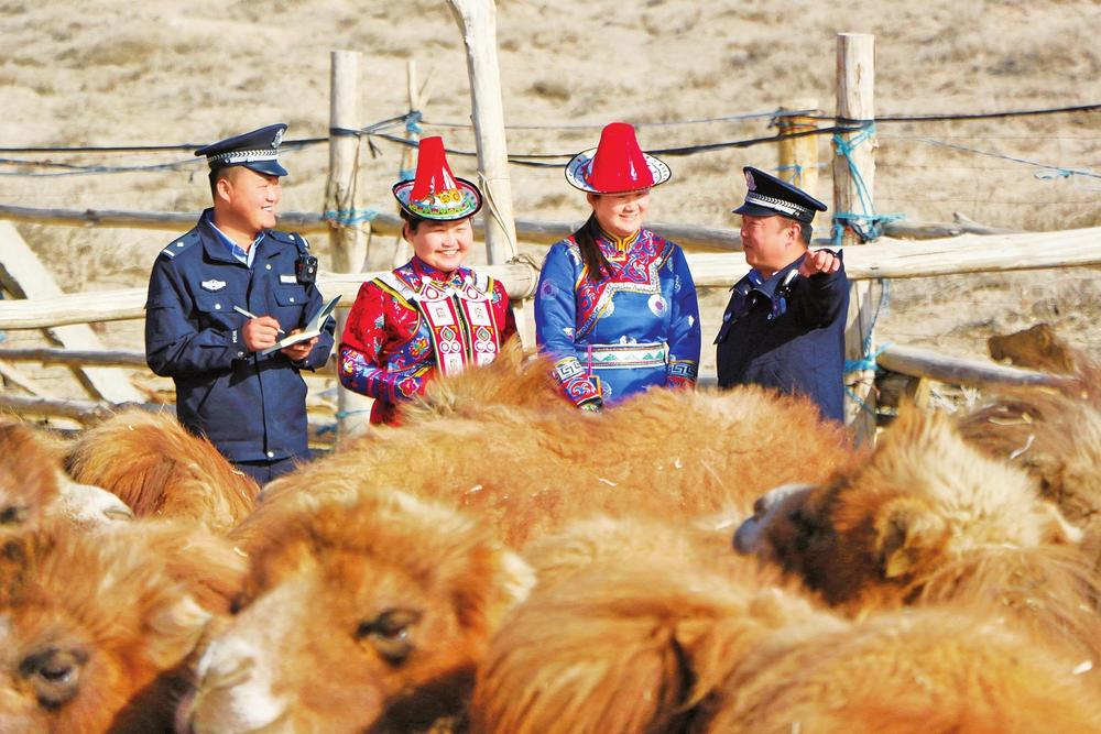 2月21日,肅南縣公安局明花派出所民輔警走進牧區(qū),引導牧民安裝“國家反詐中心”App,并提醒牧民謹防電信網(wǎng)絡詐騙。新甘肅·甘肅法治報通訊員李志鵬攝