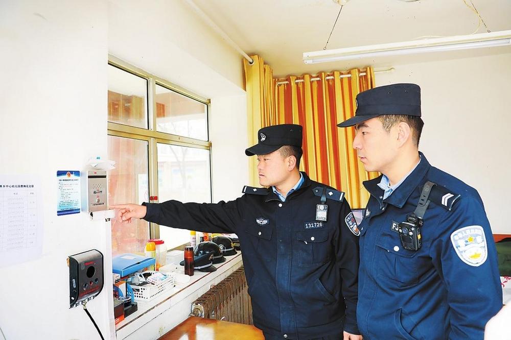 民警檢查學(xué)校安全設(shè)施。2月19日,平?jīng)鍪泄簿轴轻挤志执笄嘏沙鏊窬哌M大秦鄉(xiāng)中心小學(xué)檢查校園安防設(shè)施配備及安全通道,護航新學(xué)季。 新甘肅·甘肅法治報通訊員鄧博攝