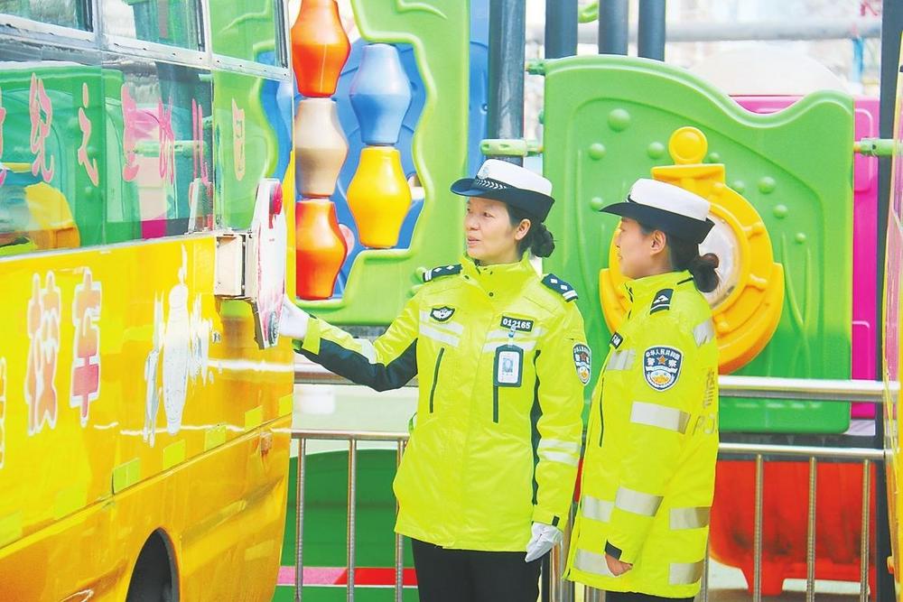 民警在檢查校車安全設(shè)施。2月19日,蘭州市公安局交警支隊七里河大隊民警走進七里河區(qū)世紀(jì)之星幼兒園,開展校車啟封安全檢查。 新甘肅·甘肅法治報記者王輝攝