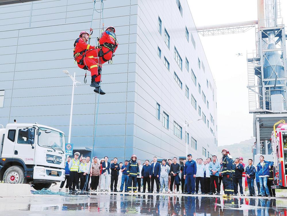 天水經濟技術開發(fā)區(qū)“5·12”消防實戰(zhàn)演練現(xiàn)場。新甘肅·甘肅法治報通訊員王琦攝
