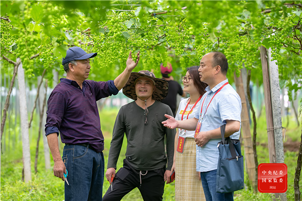 杭州市淳安縣紀(jì)檢監(jiān)察干部在富文鄉(xiāng)走訪葡萄種植戶,了解農(nóng)業(yè)產(chǎn)業(yè)扶持政策兌現(xiàn)情況,幫助解決困難,通過精準(zhǔn)有效監(jiān)督保障各項惠農(nóng)政策落實。(杭州市淳安縣紀(jì)委監(jiān)委 毛勇鋒 攝)