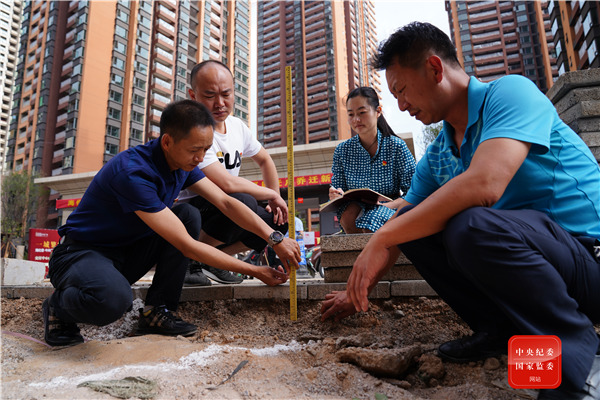云南省昆明市西山區(qū)駐村一線紀(jì)檢監(jiān)察員對城中村改造道路施工質(zhì)量進(jìn)行督查,確保路基建設(shè)質(zhì)量,建人民滿意工程。(云南省昆明市西山區(qū)紀(jì)委監(jiān)委 尹彪 攝)