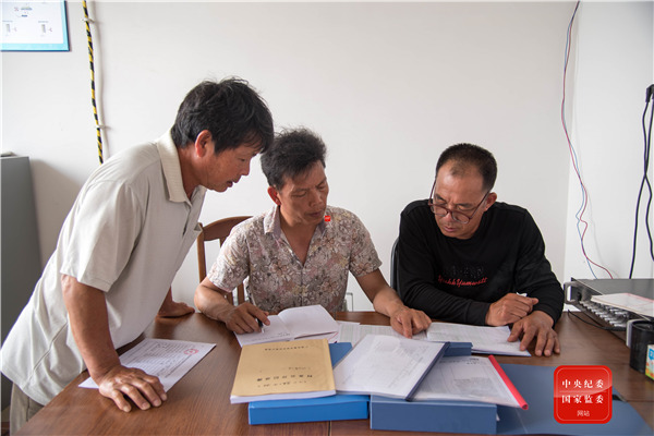 廣西壯族自治區(qū)鹿寨縣鹿寨鎮(zhèn)波井村村務(wù)監(jiān)督委員會成員定期對村級黨務(wù)、村務(wù)、財(cái)務(wù)公開情況及三重一大重要事項(xiàng)的決策等進(jìn)行監(jiān)督檢查,確保村級事項(xiàng)決策公平、公開透明。(廣西壯族自治區(qū)柳州市鹿寨縣紀(jì)委監(jiān)委 韋娟 攝)