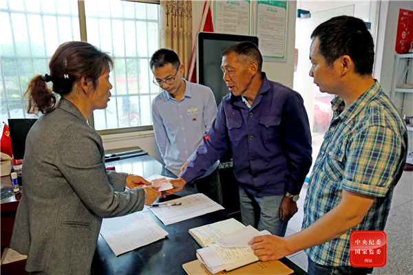 湖南省益陽市資陽區(qū)長春鎮(zhèn)幸福村村級義務(wù)監(jiān)督員主動履職,全程參與并監(jiān)督發(fā)放產(chǎn)業(yè)扶貧分紅資金,確保每一筆民生資金落到實(shí)處。(湖南省益陽市資陽區(qū)紀(jì)委監(jiān)委 張偉敏 攝)