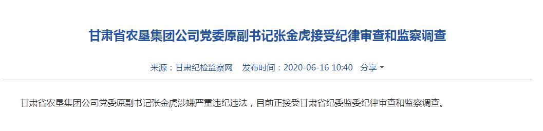 甘肅省農(nóng)墾集團公司黨委原副書記張金虎接受紀律審查和監(jiān)察調(diào)查