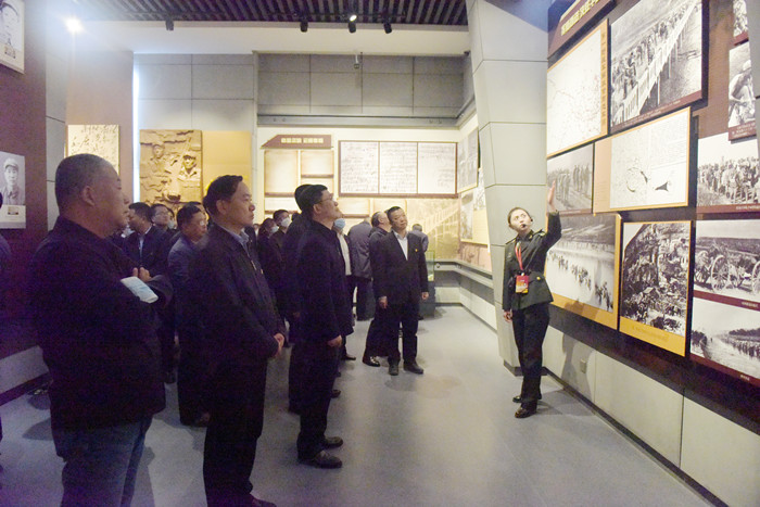 隨后,全體人員進入蘭州戰(zhàn)役紀念館參觀。展館里,一件件珍藏文物、一幅幅歷史圖片、一個個生動場景,生動再現(xiàn)了蘭州戰(zhàn)役及西北解放的歷程。在講解員帶領(lǐng)下,大家在各展廳一一參觀,仔細聆聽。
