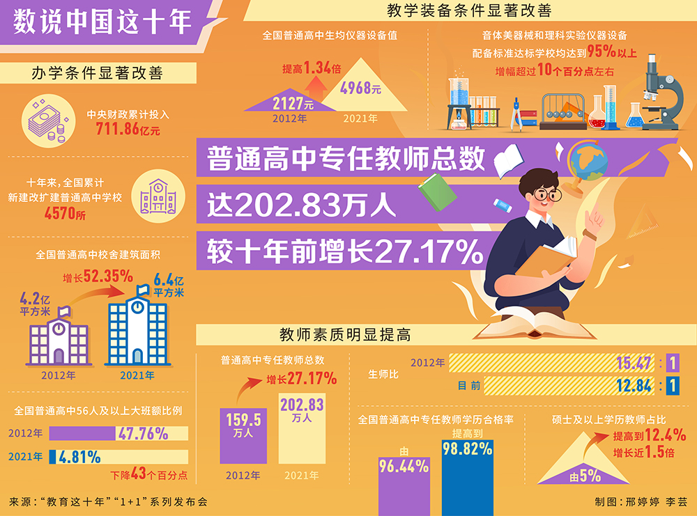 數(shù)說中國這十年丨普通高中專任教師總數(shù)達(dá)202.83萬人
